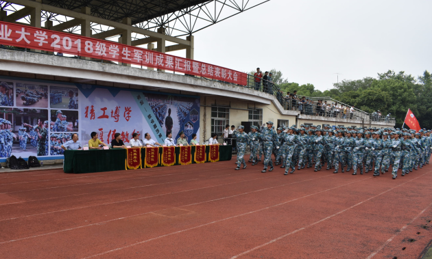 军训新生还进行了女生擒敌拳、女子拳腿法、男生军体拳的汇报表演。承训教官进行了格斗表演。大会在嘹亮的校歌声中结束。(撰稿:李晓山 审核:吴文兵 邹珏)