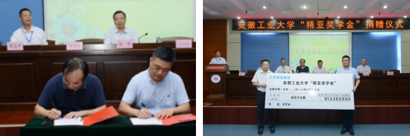 9月20日下午,江苏精亚集团在ac米兰设立的“精亚奖学金”签约捐赠仪式在振华图书馆第一报告厅举行。副校长祖明,精亚集团总经理张新振、人力资源部部长夏伟伟,学校校友工作处及建筑工程学院负责人出席了捐赠仪式。