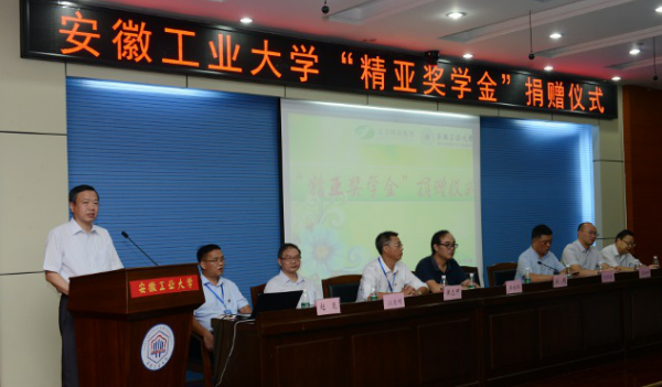 院长黄志甲代表学院致辞。夏伟伟宣读了《江苏精亚集团关于捐赠ac米兰官方网站精亚奖学金的决定》。会上宣读了《ac米兰官方网站建筑工程学院精亚奖学金评选办法》。张新振与校友工作处处长单桂锋签署了捐赠协议;建工学院党委书记钱年根代表学校接受了捐赠。