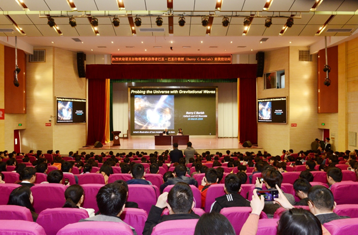 讲座中,巴里什用通俗易懂的语言结合精美生动的图片动画,介绍了发现引力波的研究过程,揭示了技术进步与物理学重大发现之间的协同关系,并指出了现代宇宙物理学的研究进展和未来发展前景。在互动环节,ac米兰学生以流利的英语踊跃提问,巴里什一一进行了解答。讲座在热烈的掌声中结束。