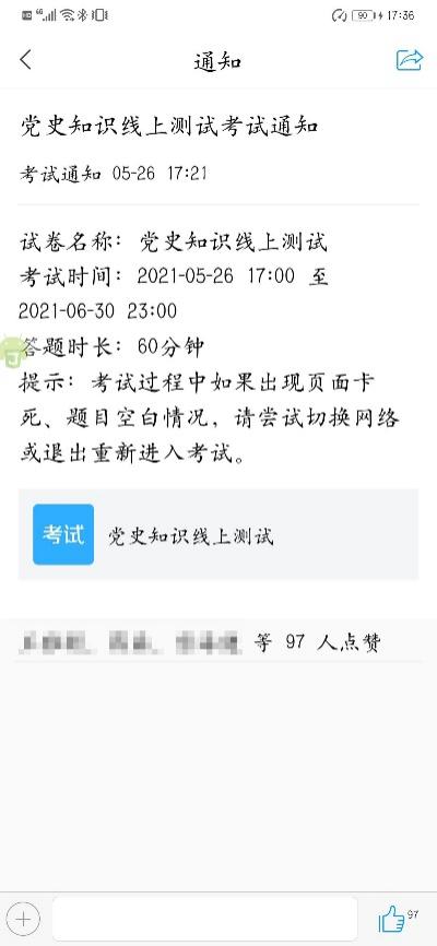 成功登陆后,在主页面点击下方的“消息”按钮,点选“收件箱”,点击“党史知识线上测试考试通知”;然后点击蓝色底色框的“考试”按钮。在考试说明界面请点选“我已阅读并同意”、“开始考试”。
