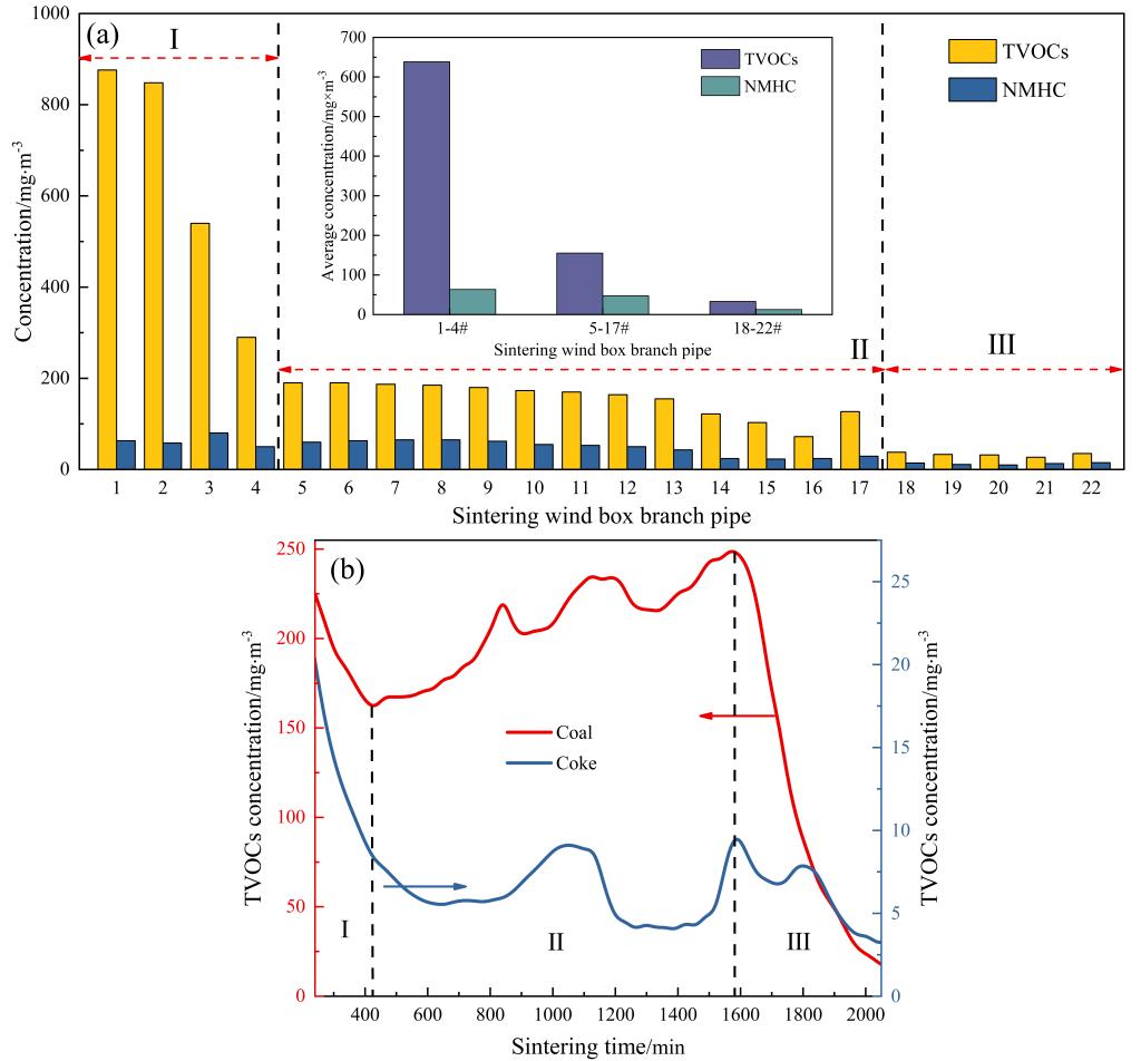 (烧结风箱支管和烧结杯试验中TVOCs和NMHC浓度)