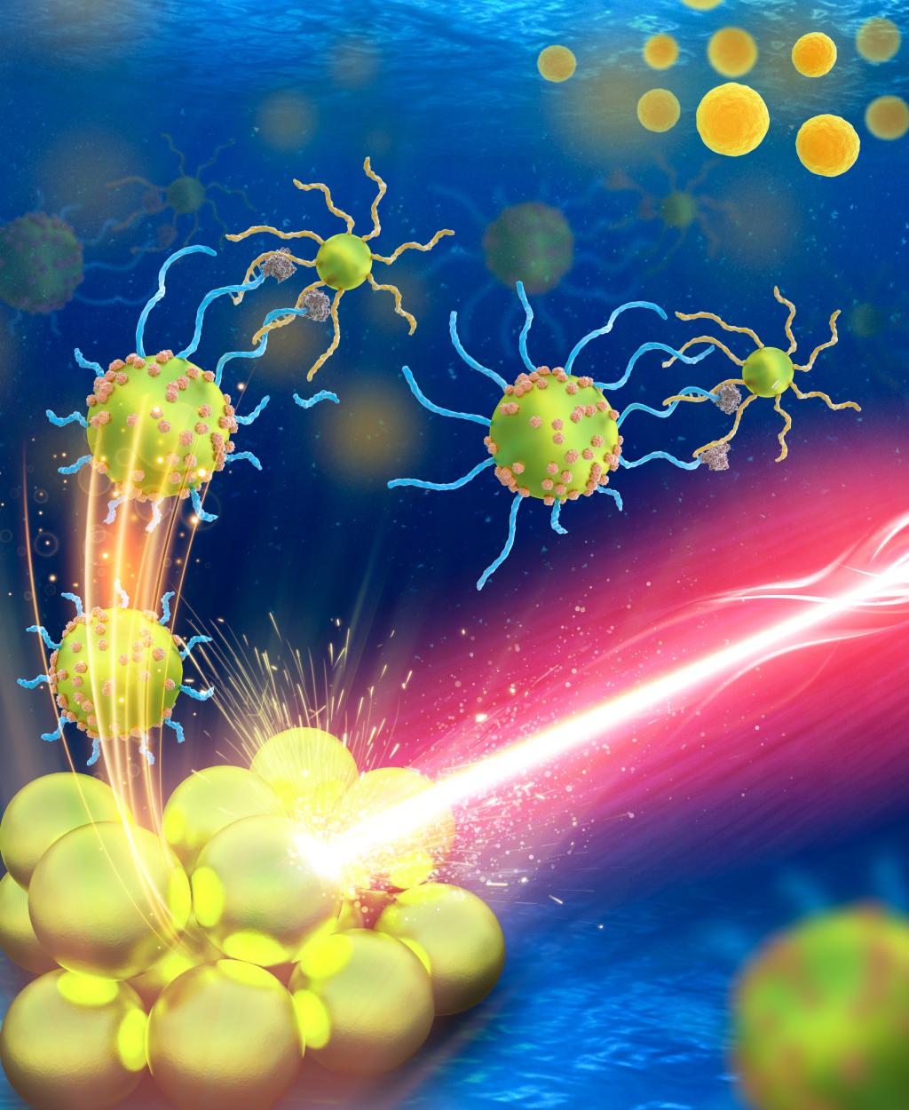 团队针对目标细菌选择了匹配的核酸适配体,利用酶切DNA反应破坏了修饰拉曼染料的金纳米粒子稳定性,构建了基于DNA分子机器的表面增强拉曼散射传感平台用于快速检测MRSA。目标细菌可以与适配体结合并置换出两条适配体互补链,DNA分子机器上修饰的发卡DNA与适配体互补链结合后会被外切酶Ⅲ水解并激活,激活的DNA分子机器会在外切酶Ⅲ的帮助下在修饰了拉曼染料和保护DNA链的金纳米粒子上通过消耗保护DNA实现行走,随着保护DNA链的消耗金纳米粒子会被镁离子诱导发生聚集产生大量3D SERS热点,大幅度提升拉曼染料的信号。通过分析拉曼信号的变化,可以精确分析100-107cfu/mL浓度范围的MRSA,通过核酸信号多级扩增和DNA分子机器实现了对低浓度细菌的快速检测。
