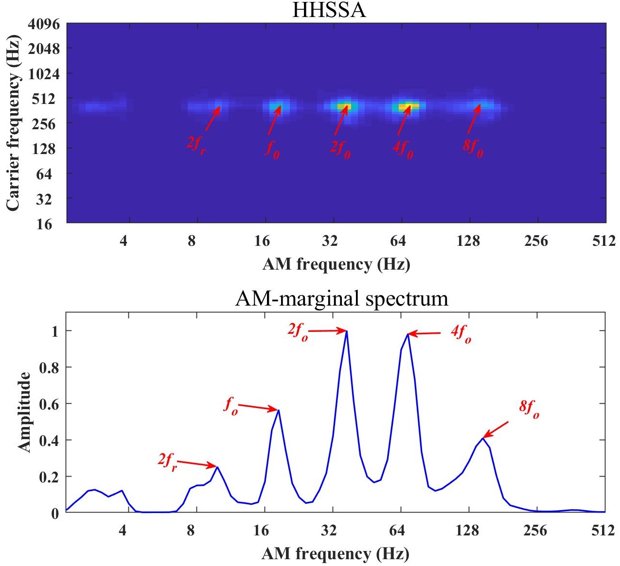 设备健康监测与故障诊断是保证机械装备安全可靠运行的重要手段。本研究通过搭建双层分解结构,将传统希尔伯特谱分析拓展到包含幅值调制信息的高维表示,更清晰直观地揭示了故障信号内部非线性耦合关系。所提出的幅值调制边际谱方法克服了传统傅里叶分析的周期性和平稳性假设,减少了无关谐波的干扰,更便于故障特征信息的获取,并通过理论建模、模拟实验台数据及实测故障数据验证了所提方法的有效性和噪声鲁棒性。研究内容丰富了机械非线性和非平稳故障信息表征,为机械装备及部件故障定位提供了新的解决方案。