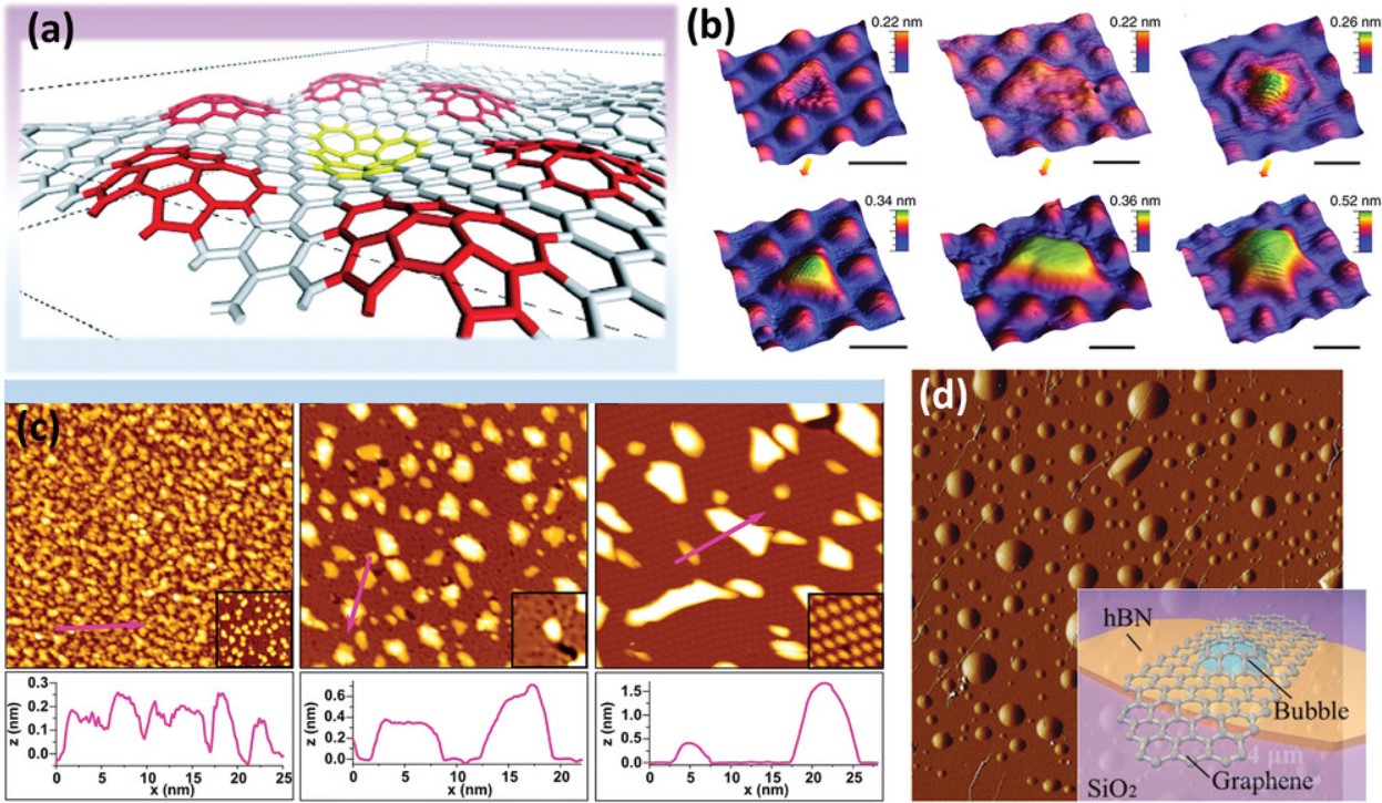 (石墨烯泡STM图像及泡形成机制示意图)