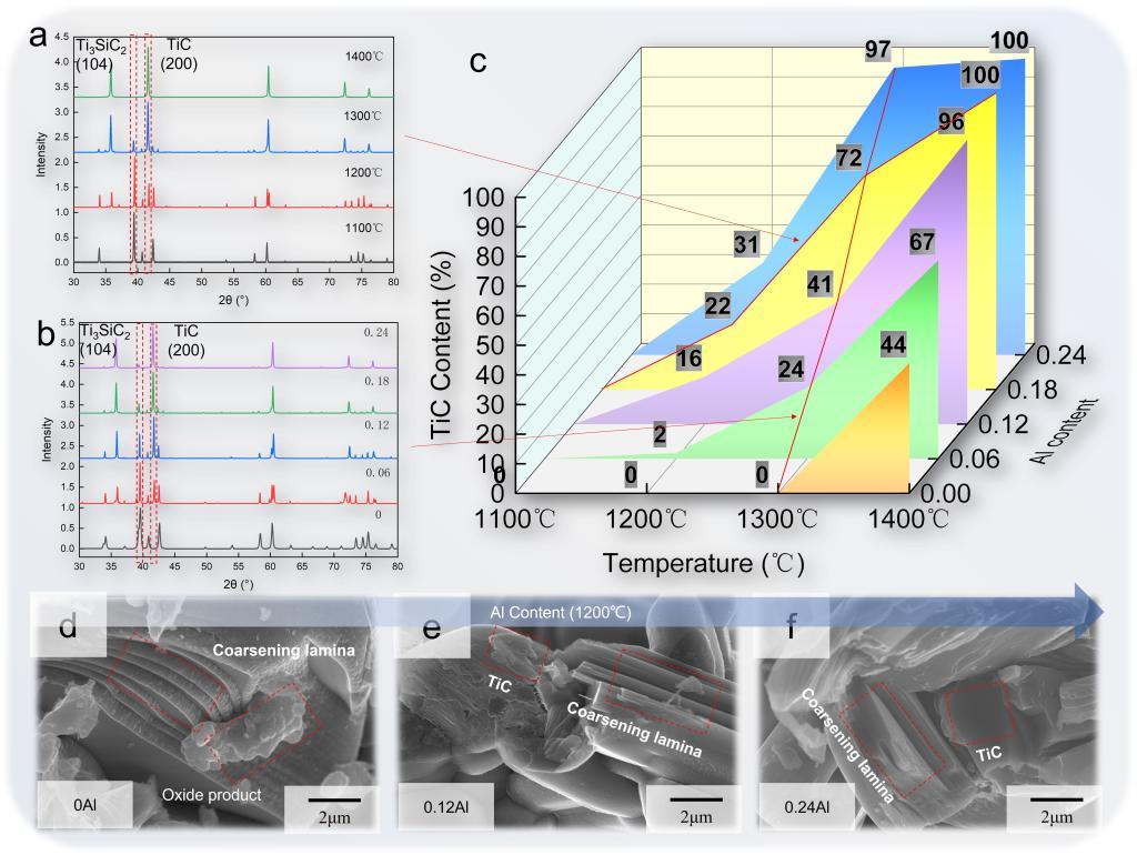 多孔Ti3SiC2(MAX相)因热稳定性和可加工性能出色,被广泛应用于高温过滤、导热、电磁屏蔽和防辐射领域。然而,Ti3SiC2高温易氧化,特别是多孔结构的比表面积大、更易氧化,成为限制其高温应用的关键因素之一。引入Al原子在高温下形成的致密氧化膜,可抑制氧原子的向内扩散氧化和主相原子的向外扩散,成为提高Ti3SiC2相高温抗氧化性能的有效途径之一。