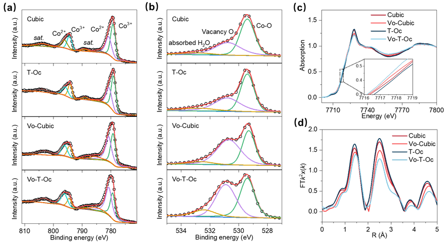 材料的原子排布各向异性导致材料的电导率、极化率、电学性质等各向异性,使得不同暴露晶面的原子结构、能级结构和表面能等存在差异。这些差异对于催化剂活性位点的电子结构和本征催化活性有着重要的影响。目前,研究发现尖晶石Co3O4的OER活性对其暴露晶面具有依赖性。除了原子排布之外,氧空位的引入可有效改善Co3O4的电子结构和OER活性。因此,探究在Co3O4不同晶面上引入氧空位对其OER活性及催化机理的影响,对开发高性能钴基电催化剂具有重要意义。