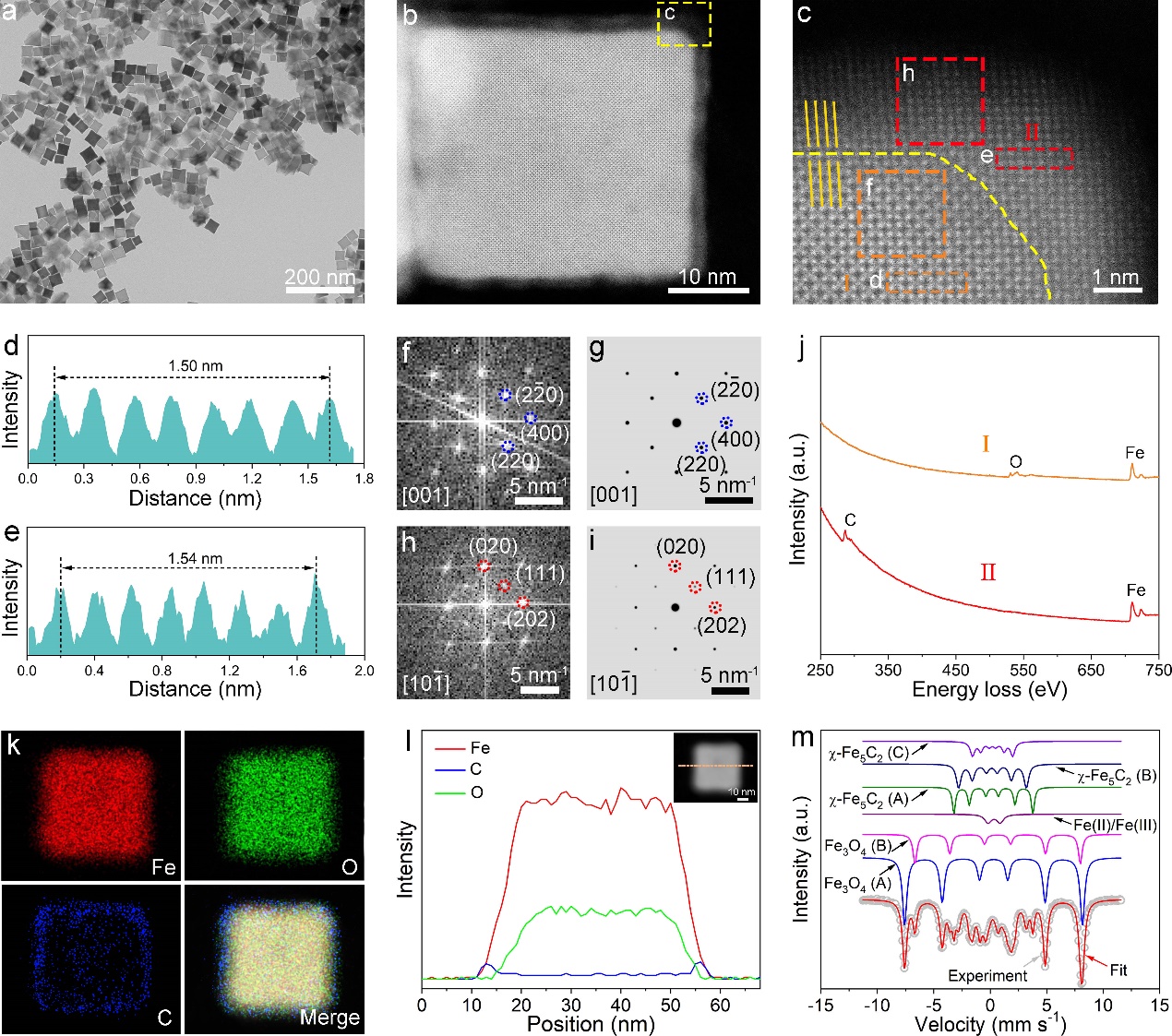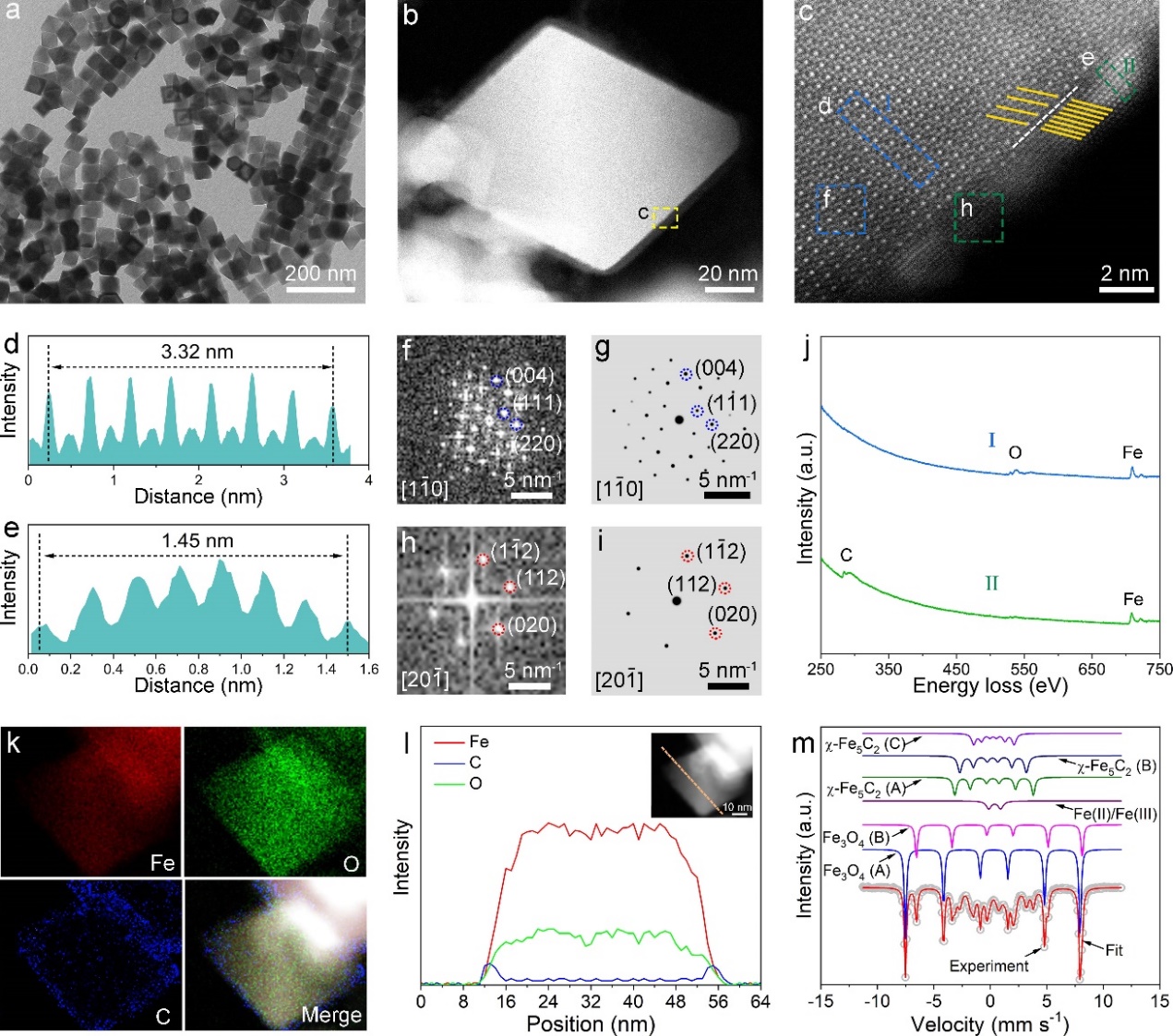(暴露{202}晶面的Fe3O4@χ-Fe5C2纳米立方体的结构表征)