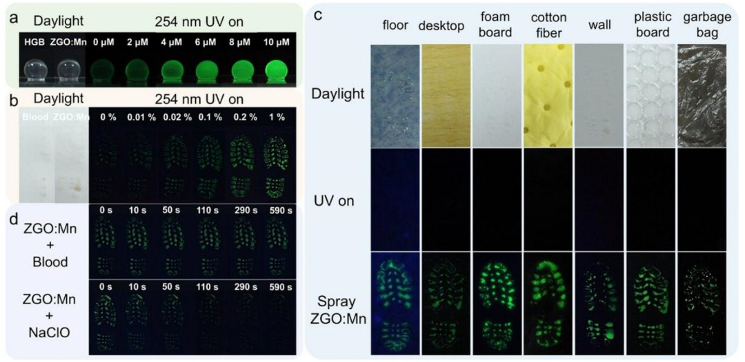(光漂白ZGO:Mn NRs对潜在血迹的显影示踪)