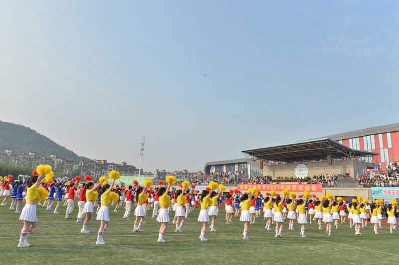 开幕式后,全校14个学院900余名同学参加大型团体啦啦操《我和我的祖国》表演。