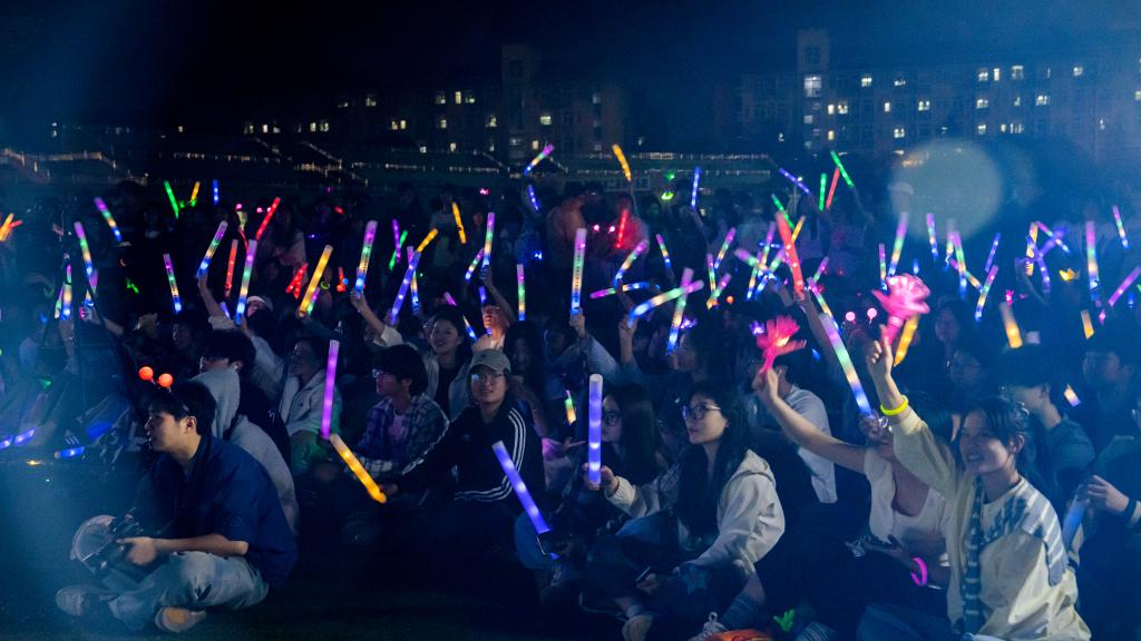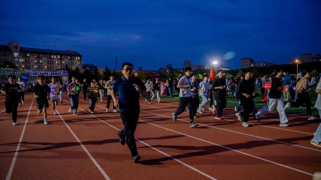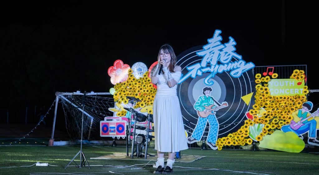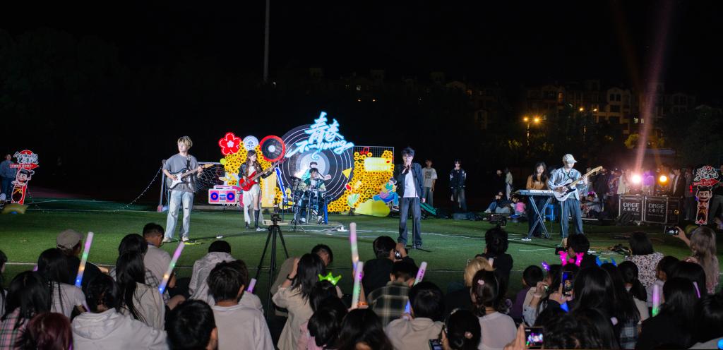 青春乐跑在拉丁舞与爵士舞的动感旋律中鸣枪,各学院旗手高举院旗领跑,全校师生踩着节拍涌入跑道。随后的“青春不一young” 草坪音乐节现场,千余名师生挥舞荧光棒齐聚操场,台上歌声与台下跟唱声汇成浪潮,共同勾勒出专属于青春的热烈剪影。